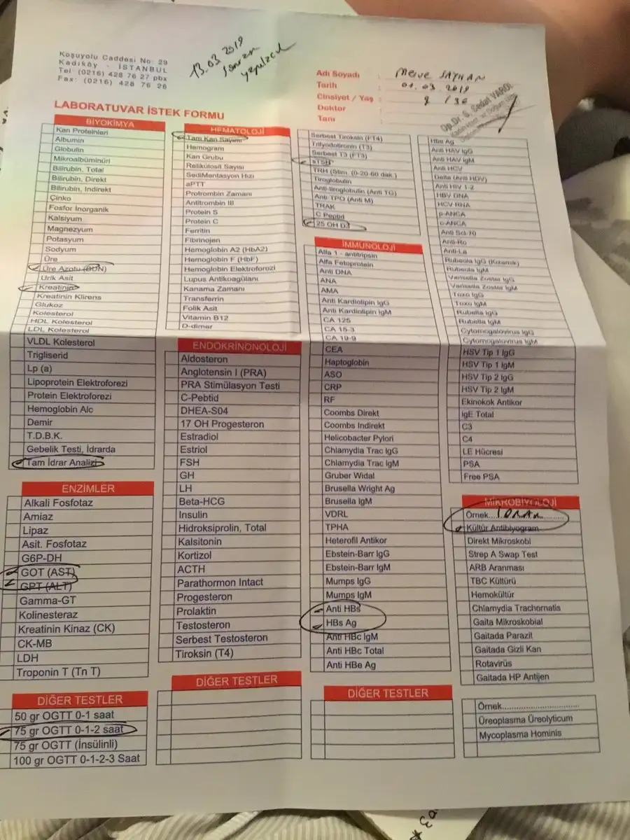 Her ay bu tahlilleri sağlık ocağında veriyorum doktoruma götürüyorum canımKızlar doktor gene benden bir sürü tahlil istedi. Benim doktor fazla pimpirikli olduğu için, hepsi gerekli mi gereksiz mi çözemiyorum bazenbir de bu tahlilleri uyguna nerede yaptırabilirim?