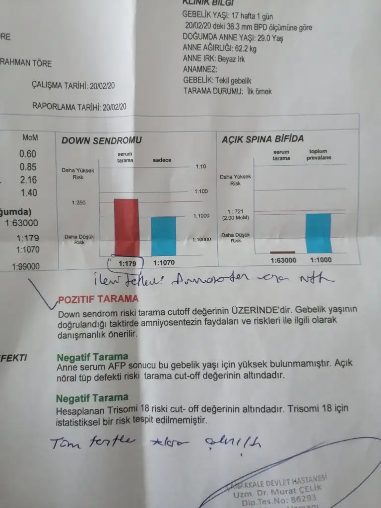 Doktor amniyosentez dedi arastırmaya sevk etti. Aglaya Aglaya özelde ki doktoruma gittim. O da amniyosentez bebek için riskli nipt testini yaptır dedi yurt dışına gönderılıyormuş 10 gunde sonuc gelıyormuş