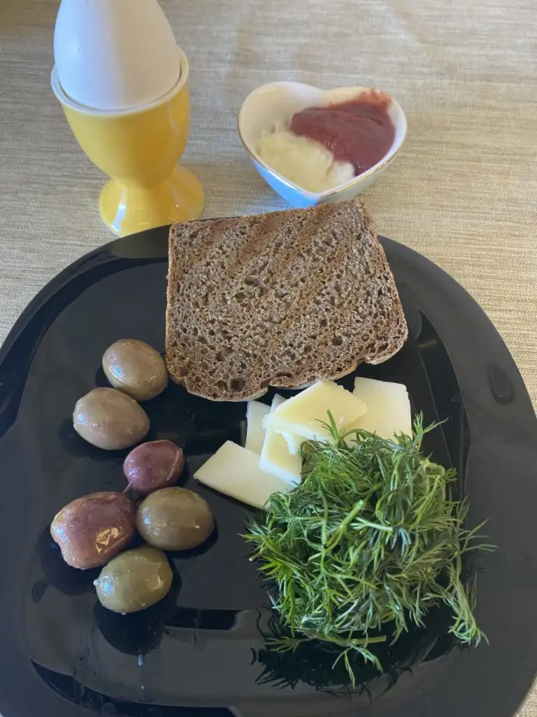 Öğlen : 2 kaşık labne - 3 etimek - domates - roka
