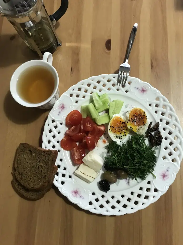 Akşam: 1 kase taze fasulye, 3 çay kaşığı sütlaç ( ben daha yiyecektim de eşim önümden aldı.), 5 çiğ köfte ( etsiz ), marul, iki-üç mandalin dilimi, iki-üç muz dilimi, bir dilim çavdarlı ekmek