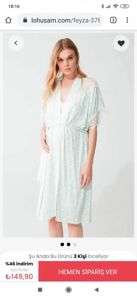 Ben bu renk ve askılı bir gecelik sabahlık takım aldım kumaşı falan çok güzel.ben çok beğendim. Sanırım hastanede çok soğuk olmaz. Olmadı bir hırka gibi bişiler atarım valize. Bir de suwenden önden düğmeli kısa kollu pijama takımı aldım biri kırmızı diğeri krem pembe renkli onların fotoğrafını bulamadım.bebek olacak diye ev kesin sıcak olacaktır. Uzun kollu tercih etmedim. Kilo aldığım için önceki pijamalarım olmuyor değişip değişip giyerim diye düşündüm.Kızlar lohusa takımlarını nasıl aldınız.kisa kol üstüne sabahlık daha mi iyi olur.hastane sıcak olur mu acaba