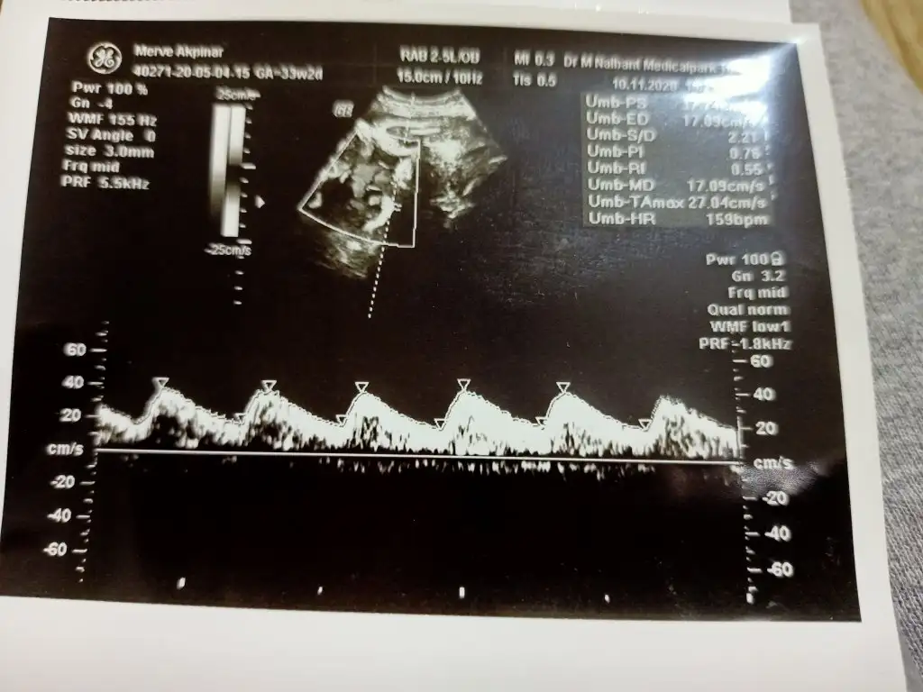 Doktordan fark ediyo sanırım benim her gitmem de veriliyo kağıt şeklinde bakiyo ama bende 12 haftada suphelenmisti yinede riske atmiyo bebeğin kilo alımı filan iyi olasa da bakiyo.Kalp atışı bile dinlemiyoruz ölçümleri alıyor suyu iyi kg şu bu diyor yolluyor