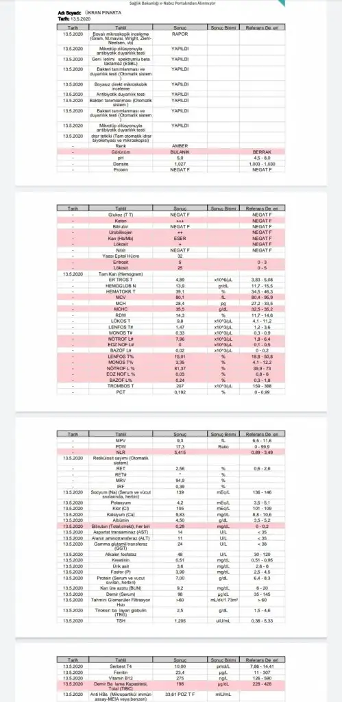 Kizlar merhaba, bugün 6+1 de doktora gittim.kalp atışını da duydum çok şükür.ancak aşırı bulanti ve iştahsızlık yaşadığım için doktor idrar sonuçlarına bakıcam.kotu çıkarsa 1 gün yatırırım dedi.sonucum çıkmış yarın Gondericem doktora.kizlar bu sonuçlardan anlayan varmi.bakiyorum idrarda enfeksiyon ve keton pozitif görünüyor.