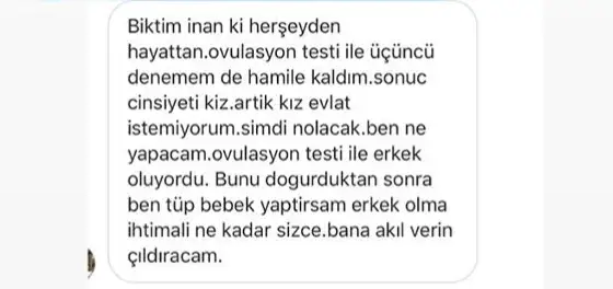 Cik haklii yaBenimki o kadar konuşuyosunuz herşeyi paylaşıyorsunuz madem gittiğimiz doktoru da araştırın ona giden hastaları bulun olumlu sonuçlar alan olmuş mu nasıl olmuş ne olmuş bi sorun diyo o da alıştı artık