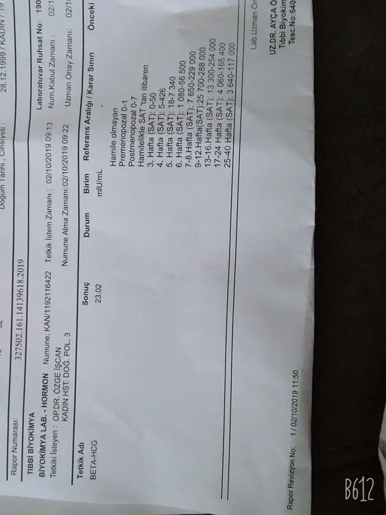 1. Gebelik testi mi yptrdin?Birşey sorabilirmiyim ben bugün kan testi yaptım 23,02 cikit. Ve yumurta yeni çatlamış ve keseyi görmediği için dış gebelik diyor beklemelimiyim acabaaa
