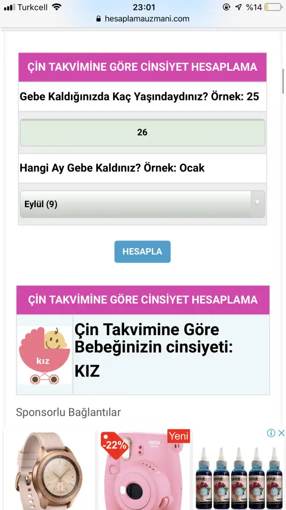 Baska sitede dogum tarihini gun ay yil girdim oyle istedi onda da erkek cikti hangisi dogru ayolBenimde kız çıktı eğer yanlışsa bu düzeni bozarız![]()
