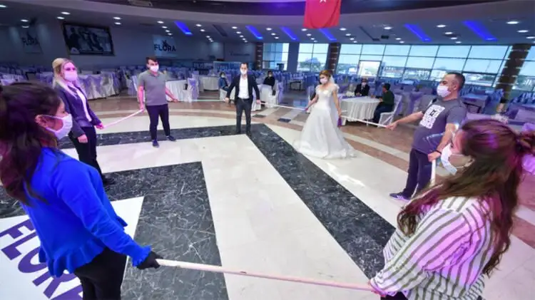 Buarada düğün salonlarında alınan tedbirlerden biri sopalarmış böyle halay, horon çekilecekmiş..