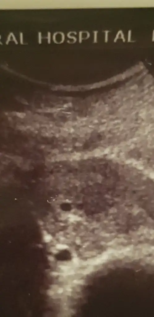 25 ekimde hcg 2 000 çıktı. P tesi yani 28 inde doktora gitti. Kesenin boyutunu ölçememiş doktor. Haliyle haftasını da hesaplayamamış Şuan kesenin ölçüsü elimizde yok. Resimde üstteki siyahlık kesekiz. Altta ki de 2.54 cm çıkan kist. Keseden büyük kist varmış. Biz bu işin işinden çıkamadık lütfen fikir söyleyin