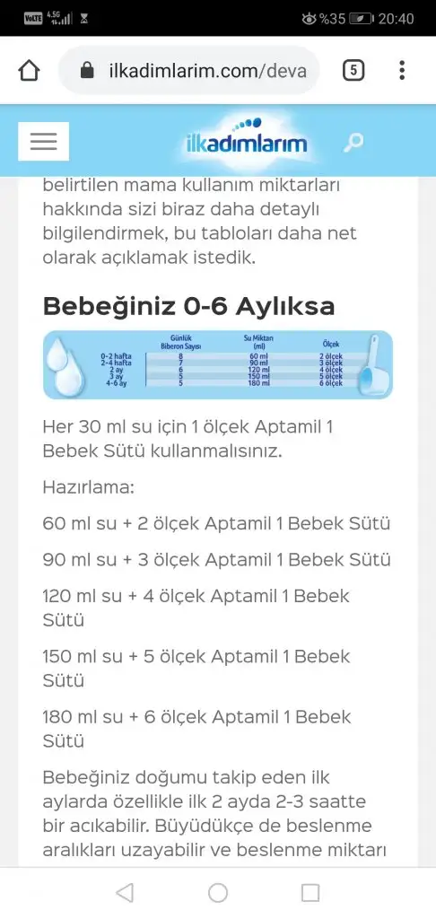 Tamam canım, bende baktım hippte 30ml ılık suya 1 ölçekmiş, bi onu veririz doymazsa bi daha yaparız sonra.Canım bak şu aptamilin tablosu var