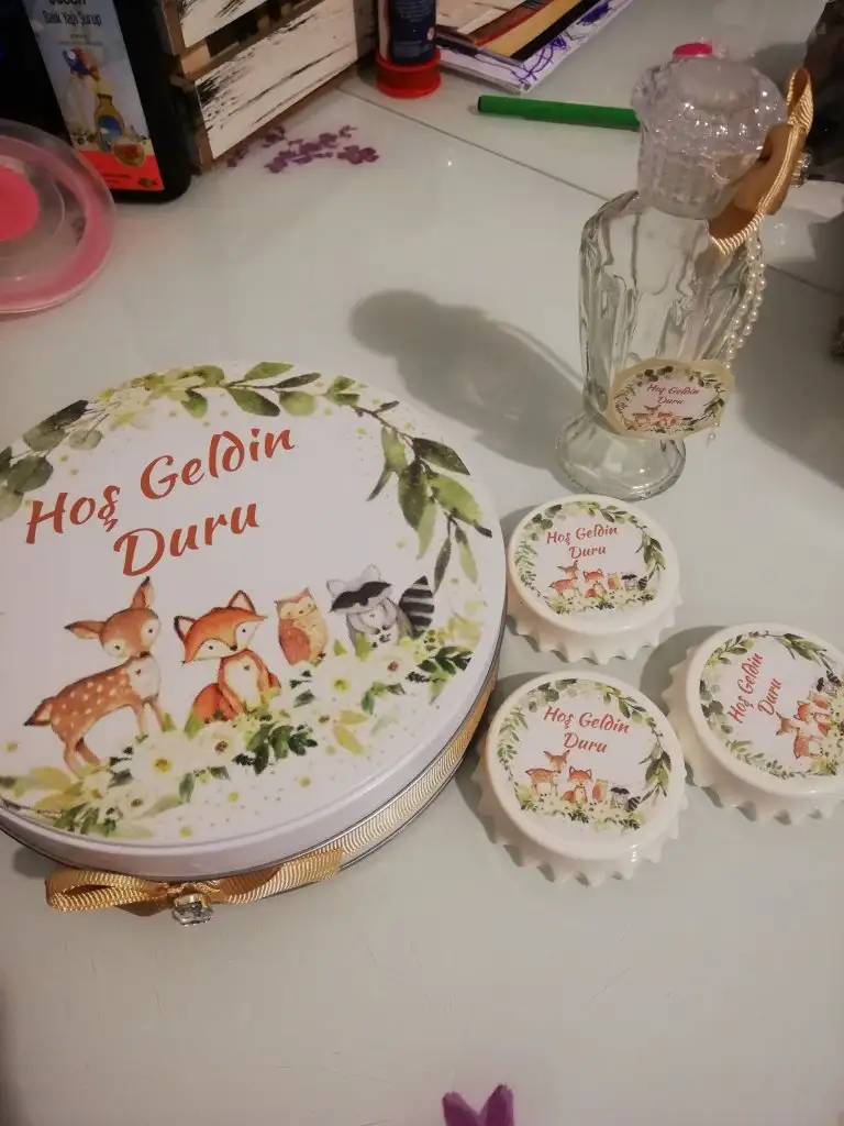 Ay ben de aynısından yaptırcaktım çok tatlışBu da çikolatamız, magnetimiz ve kolonyamız. Çikolatası güzel ama baskısı kağıt. Yine de idare eder gibi.