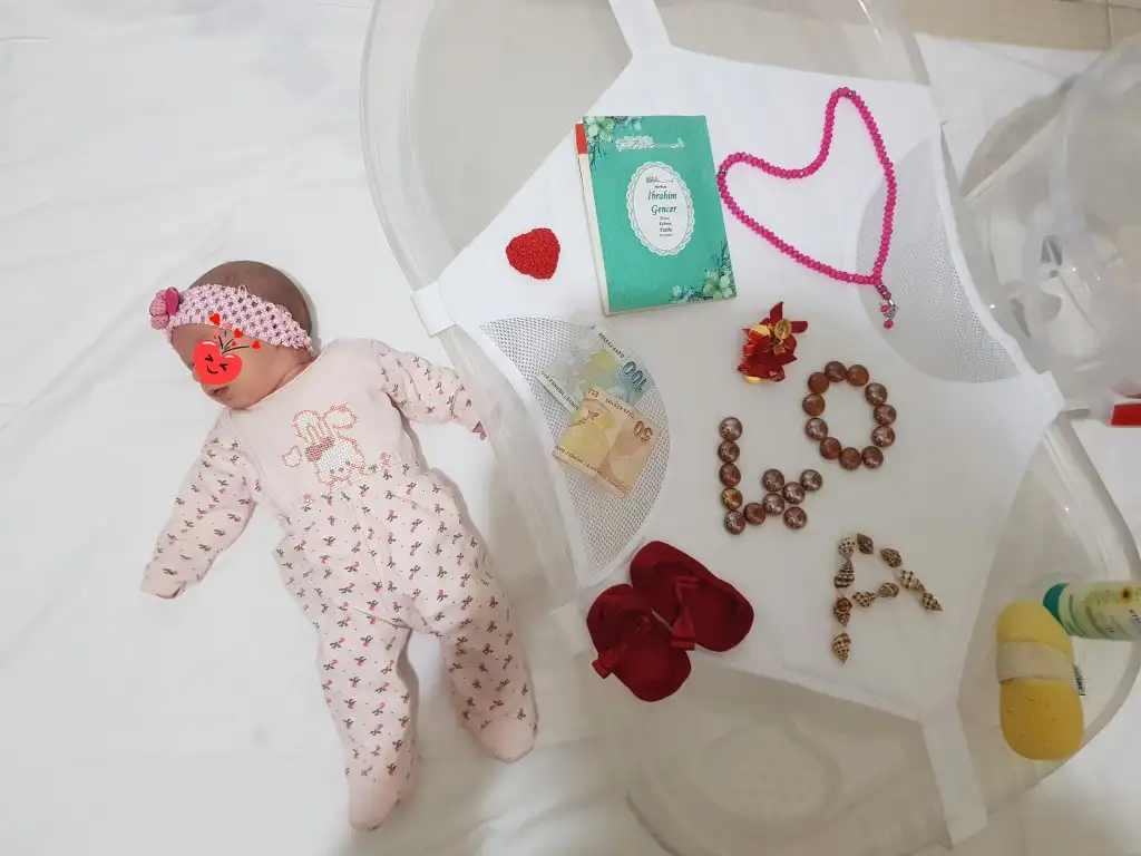 Bebeği yıkadık, ben yikandim ve kucağıma aldim. O arada iyi dileklerde bulunduk babasıyla birlikte bebiş icin