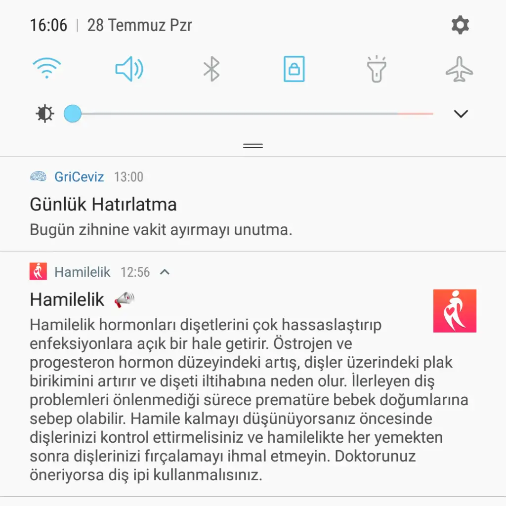 Dün bir uygulama bu şekilde bir bildirim gönderdi. Sanki biliyormuş gibi. Ama gerçekten diş etlerim fena sızlıyor. Ki dişlerim allaha şükür sagliklilidir
