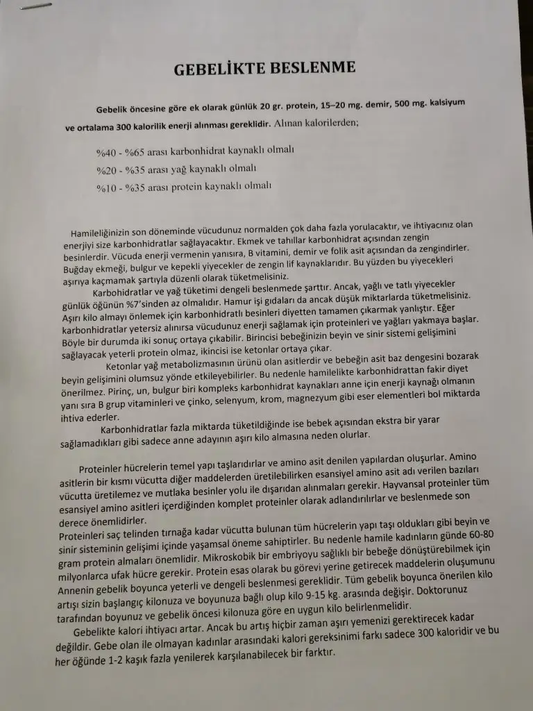 Söyledi kuzum bol su iç her gün süt yumurta tüket çok yorulma dedi bir de bir kaç sayfalık beslenme kağıdı verdi. Ayrıca bu hafta ayrıntılu tahlil de yaptırmanız gerekiyor onun için de cumaya kadar gideceğim hastaneye inşallah