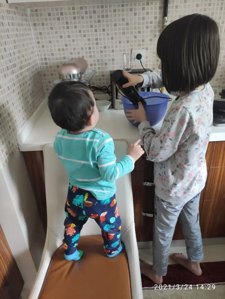 Öyle tabi önceleri sadece yanımda dururlar sonra mixeri tutarlar sonra yumurta kırmaya başlarlar derken malzemeleri alıp koyma ve en son hadi kendiniz yapına döneriz biz. kızlarda süreç böyle işledi.sen de önce yanlarında ol harika süper olmuş falan derken motive olurlar🥰bknz:foto👇