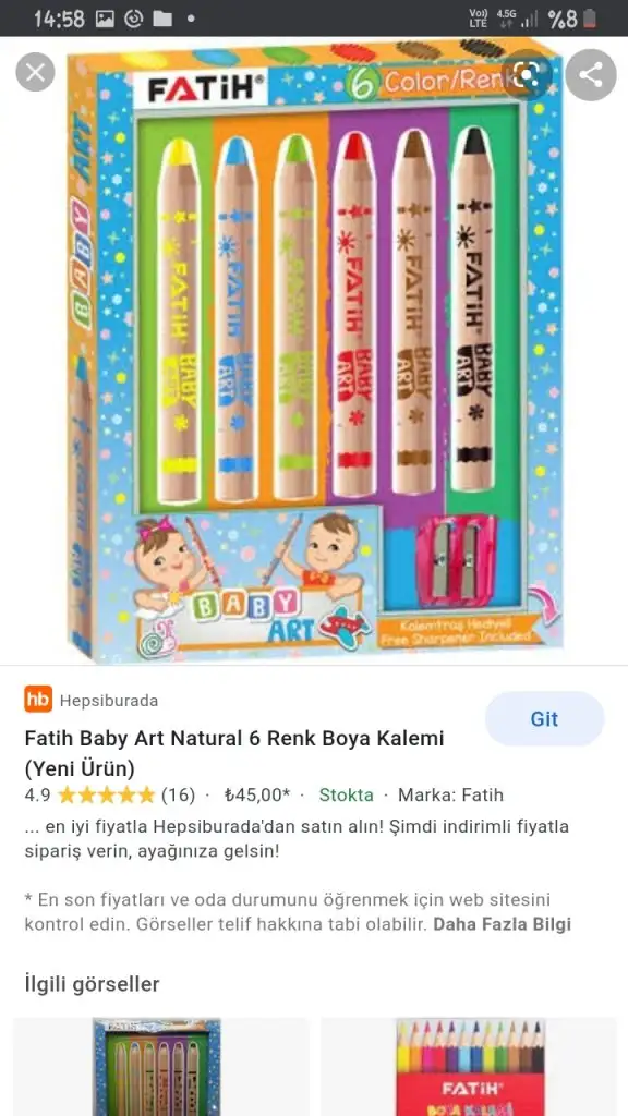 Alttaki den almıştım ben şeker. E bebek şubat indiriminde yapmıyor benim oğlan çok fazla ağzına alıyor halen herşeyi. Normal boya kalemiyle de bir iki kağıda sürüp yine ağzına götürüyor ben de bıkıp kaldırıyorum. Acaba hergün yapsa etse alışır mı ağzına almamaya. Dün kırmızı mercimek etkinliği yapayım dedim boşalt doldur, sakla, aktar falan. Yok hemen tek tek ağzına alıp yuttu topladım ben deBen denedim..abisinin bebek kalemlerini veriyorum..gec bile kaldım.ama oyle duzenli degil. Karaliyoruz 10 15 saniye iste.sonra kagidi paralayip yemek istiyor çünkü