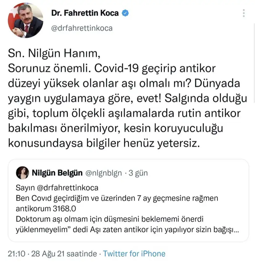 Ebru benim de kardeşim hamile ve gebeliğinin işk başlarında covid geçirmişti çok ağır değildi allahtan o yüzden aşı çıkınca pek emin olamadı yaptırayım mı yaptırmayayım mı diye. Ben de berguzar korelde gördükçe endişe ettim ol da diyemiyorsun olma da kendisi şüpheliyken. Ben olmasından yanayım aslında ama işte büyük sorumluluk kendilerinin karar vermesi lazım. Ama antikor testi yaptırıp karar vermesini söyledim. Dün çıkmış 1300 civarı antikor. 34. Haftada. Aslında fena değil en azından doğuma kadar idare edip doğum sonrası hemen yaptırabilir diye düşünüyorum. Ama nette araştırınca da antikor seviyesi şu iyidir diye bir şey de söylenmiyor henüz o seviyeye gelememiş araştırmalar. Hala şüphede kaldım bu sefer. Sence nasıl antikor seviyesi? Etraftan duymuşsundur belki.O