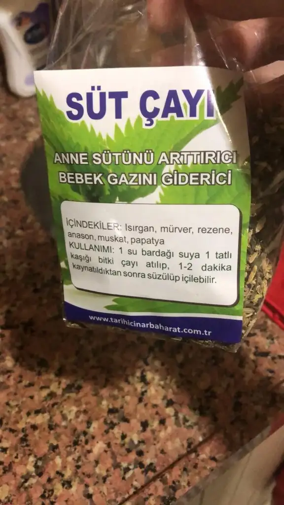 Çok az muskat, çay kaşığının ucuyla, rezene kimyon anason papatya.. karıştırıp sıcak suda 10 dk demleyip içiyorum. 2 saat sonra emzirdikten sonra rahatlıyor çocuk. Çocuk çok kötüyse 2 ÇAY kaşığı ona da içiriyorum.