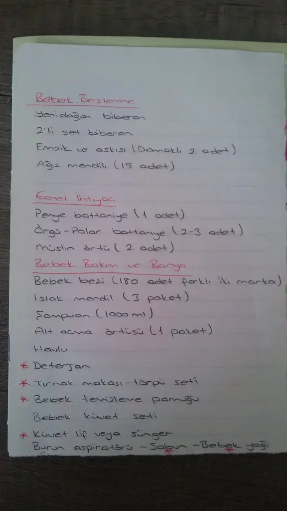 Tesekkurller bende listelere gore kendime haizrlym bizim dogru duzgn bsymz yok gec mi kaliyorz acabaMucizeicimde Listem bu şekilde bebek bakım banyodaki kırmızı işaretlediklerim hariç hepsi aldığım şeyler adetlerinide yazdım