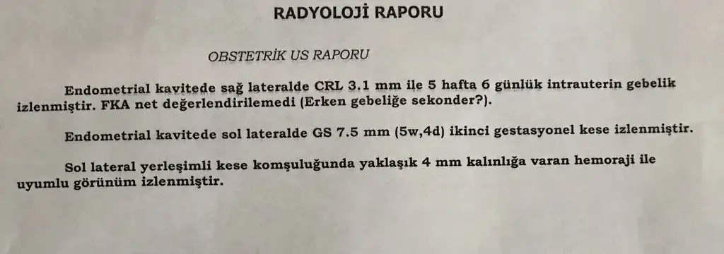 her şey yolundaymış canım kese göründü 8mm dedi galiba o kese mi oluyo o an heyecandan pek anlamadım 😀 kese var ama embriyo oluşmamış dedi bu da çok normal daha çok erken dedi. 5+4 müş.