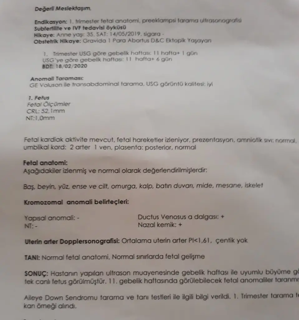 gözün aydın canım çok sevindim, hep böyle güzel haberler alalım inşallahMerhaba kızlar kontrolum vardi bugün doktor herşey normal dedi çok şükür. Zipliyordu eli kolu durmuyordu zor ölçtü hocaCinsiyet için bir ay sonra kesinlessin o zaman söyleyim dedi. ikili için kan verdim tsh t4 icin de sabah kan vericem. Sonuç raporunu koyuyorum buraya bilgili arkadaşlardan yorum alırım.