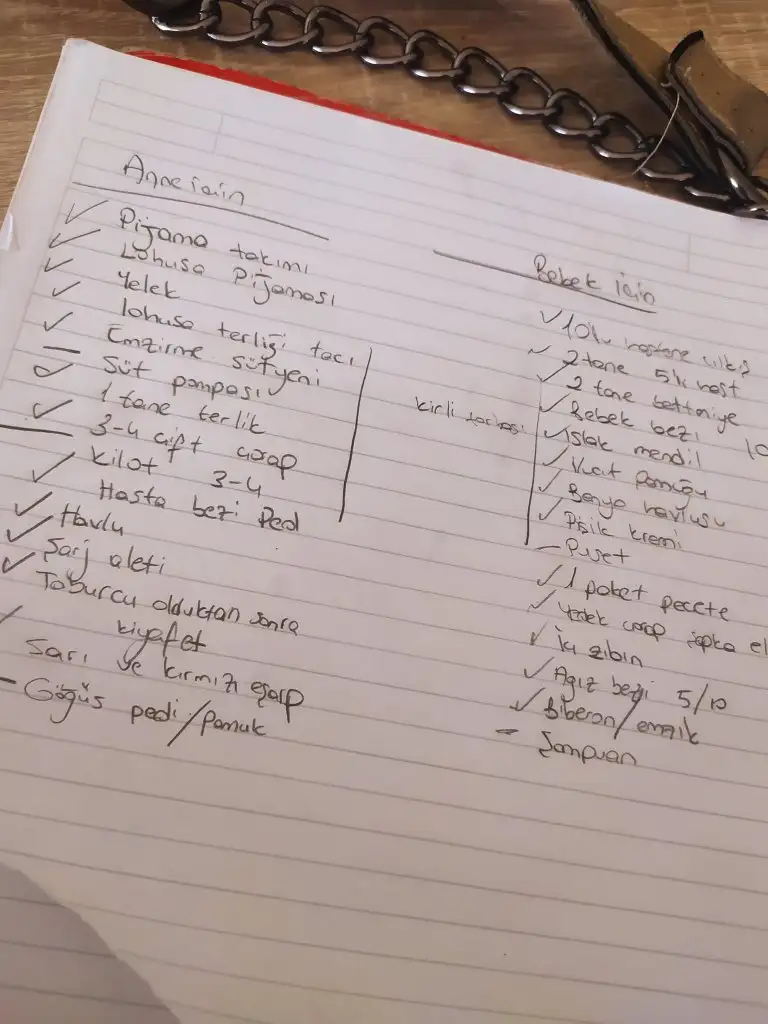 Doğum çantası için liste yaptım isteyen olursa atayım