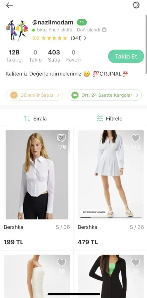 En son eklediğin hesap bayan giyimine dönmüş oraya da kendimiz için bakabiliriz orijinal ürünlermiş