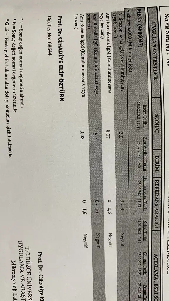 Galiba bisey çıkmamış dimi canim. Doktora attim ama donmedi bana. Ve bu testler ozelmis 500 kusur para istedi benden ozel hastaneRubellayı hatırlamıyorum ama toxoplazmayı gebeliği düşündüğümde yaptırdım canım ben (gebelikten 6-7 ay kadar önce). Hamile kalınca doktora göstermiştim tekrar istemedi. Önemli testler onlar düşüğe vs sebep oluyor, yaptır canım mutlaka.