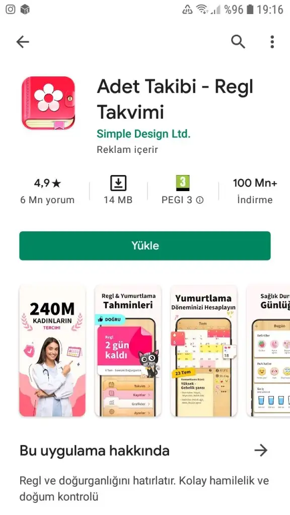 Uygulamanın adı Takvimim.. Uzun yıllardır aynı uygulamayı kullanıyorum canım. İnşallah yüzümüz güler bu ay