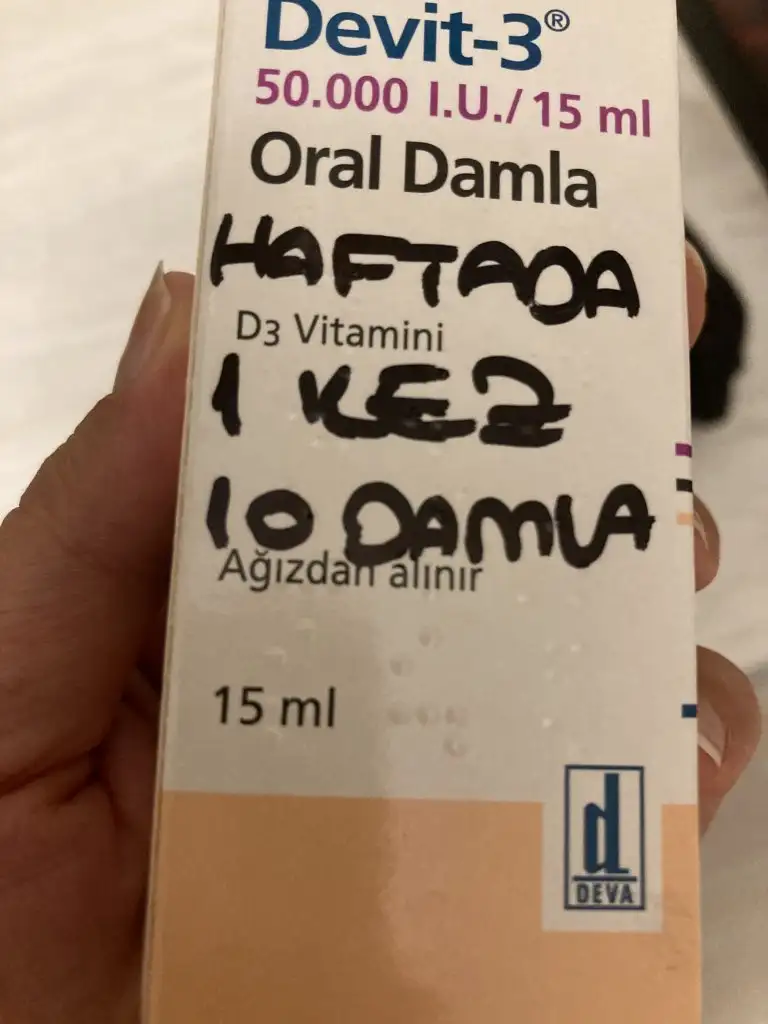Fotoğrafını ekledim ben ölçülerden anlamıyorum.50000 az mı oluyor haftada 1?Benim hep düşük zaten daha önce iç hastalıkları doktor devit 3 ampul kullan dedi o 300.000İU . Her iki-üç hafta alıyorum ama hala yükselmemiş . Bebiş için vit D ,omega ve ferritin çok çok önemli tabiki