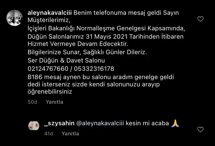Ben yarın kına mekanıma gideceğim o zaman sorayım biBen aradım ama ulaşamadım siz aradınız mı salonlarınızı