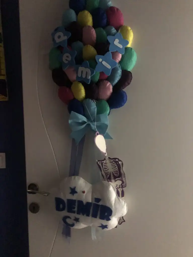 Bana hediye geldi ben yaaptirmadim ama hastaneye degilde odasına astım. Kimse gelemiyecek nasilsa hastaneye diyeKızlar hiç biriniz yaptırmadınız mı isimli kapı süsü