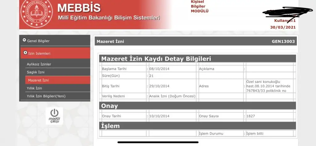 Benim ilk hamileliğimde sisteme işlenmiş raporlarıma baktım. Aşağıda var resmi de. Çalışabilir raporunun tarihi sisteme işlenmemiş bile. Doğum öncesi izne ayrılış raporunun tarihi ve doğum sonrası izne ayrılış raporunun tarihi MEBBİS’e işlenmiş sadece. Yani çalışamaz raporu aldığın tarih baz alınıyor; o da doğum öncesi izne ayrıldığın tarih olarak geçiyor. Yani MEB de öyle. Diğer kurumlar belki onu kabul ediyodur ama MEB çalışamaz raporundaki tarihi esas alıyor.Evet ben de aynen bunu dedim. Hatta sonuçta o tarihten önce de izne ayrılabilirdim mesela 35. Haftada dedim. O zaman almak zorundaydın. Ya da doğum olsa zaten sisteme doğum oldu diye girilir. Aksi bir rapor olmadıkça sen sistemde o tarihte izne ayrılmış sayılırsın dediler. Sen şimdi alabildin mi tekrar o tarihte yazan tarihle uyumlu çalışamaz raporunu.