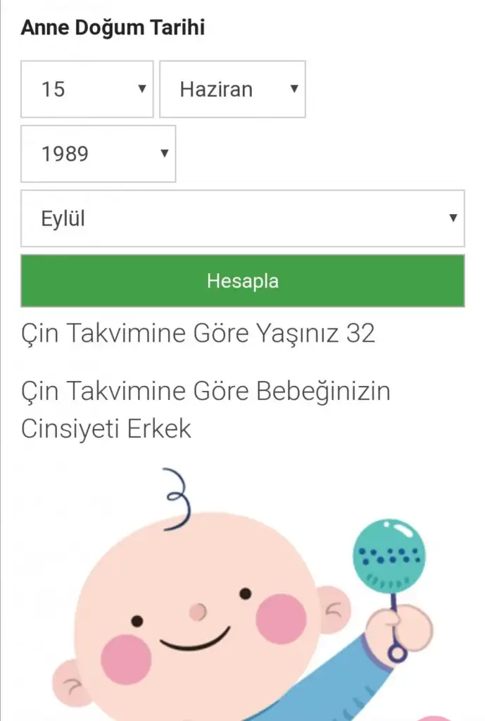 Bi de Rus takvimi varmıs, onda da erkek cıktıİnternette Çin takvimi benzeri bir cinsiyet tahmin yöntemi. 2cocugumu da dogru gösterince merak ettim yapan varmı diye