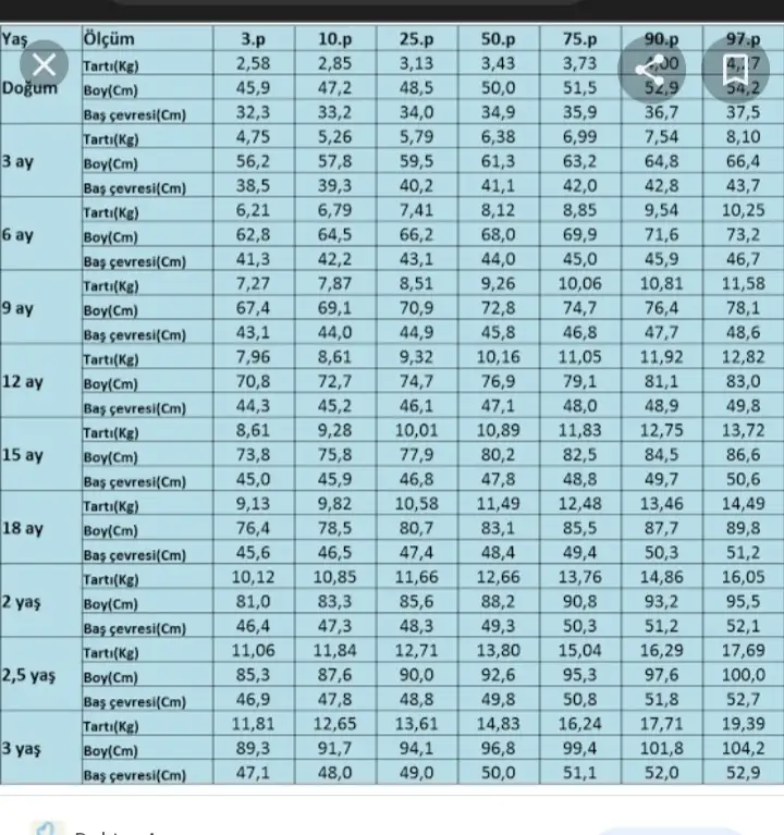 Su tablodan bakıyorum ben burada yüzde 50lerde 3aylik kilosu.Yok canım %20 nin altında şu an. Tam %19. Ama hep aynı persentilde doğduğundan beri düşmedi. Geçen hafta bir aşağı yön çizdi ondan panik yaptı doktor. Ama 5. Ayda doğum kilosunun iki katına çıkarmış bebekler bizim 4 aydan önce çıktı işte.