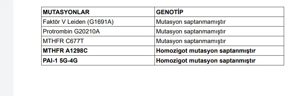Bu şekilde yazıyor bende ama eğer yazıyosa söyleyin de ben de bileyimgenetik raporda canım pıhtilaşma faktörü birde heterezigotlar var