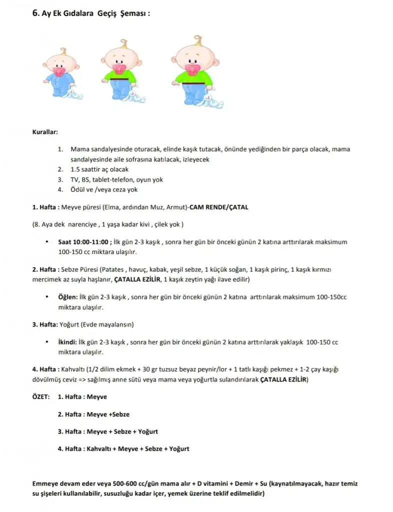 Şunu anlamadım suyu niye kaynatmayin yazmış...bebeklere kaynatılmış soğutulmuş su verilir bildiğimSöyle bi liste verdi dr um, biz sebze ve yoğurt tattirdigimiz için meyveye sonradan geçtik.. belki fikir olur liste size de