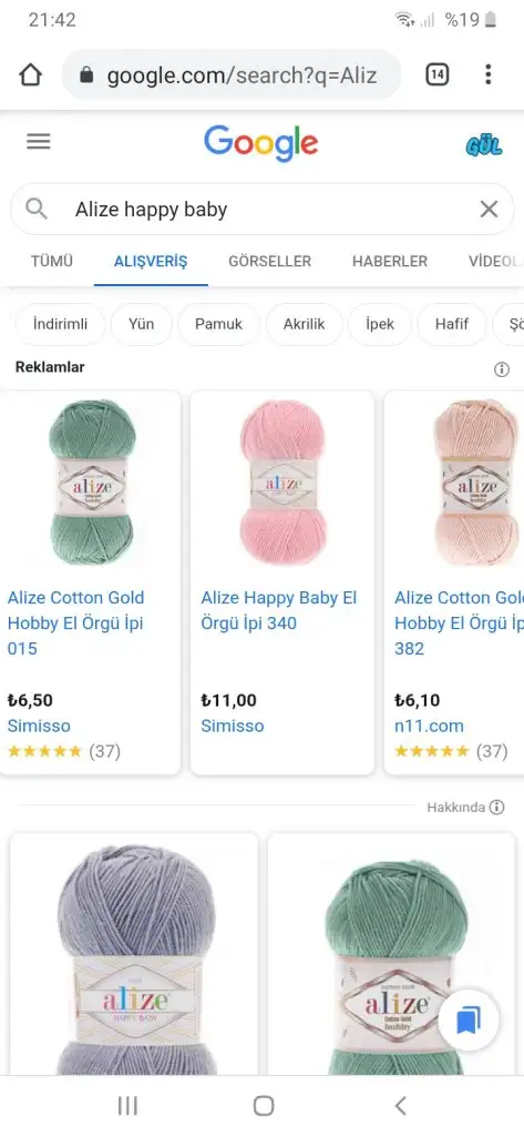 Ben oren bayan in lux baby ipini aldm.pek secenegm yoktu kartopu ve alize ip bulamadm