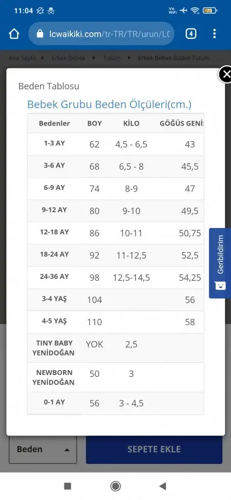 Bnce Manikli çok hızlı büyüyorlar sonuçtaGünaydın hayırlı günler arkadaşlarben LCW den alıyorum tulumları üç tane 0-1 ay 4 tane 1-3 ay aldım. Bı bu kadar daha alırım diye düşünüyorum ama yetermi. Ayrıca 0-1 ay 56 cm 3-4.5 kilo gösteriyor, yenidoğan 50 cm . Hiç yenidoğan almasam başta biraz büyük de olsa 0-1 giydirsem olurmu sizce