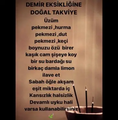 Evet canim kendim hazirlaidm biraz şu ve limonda sıktım içine emilimi olsun diye portakal veya limon yemek lazım bol bolKendin mi hazırladın bu karışımı canım yoksa hazır mı aldın.benim ferritin 4 hemoglabin 9 çıkmış hamilelikten öncede ferritin 6 ydi aylarca ilaç içtim en son kaç olmuştu bilmiyorum dikkat etmedim ama yine düşmüş.hergün kan ilacını alıp üstüne limonlu su içiyordum yanlış mı yapıyorum kızlar c vitamini ile etkisi artıyor demişlerdi