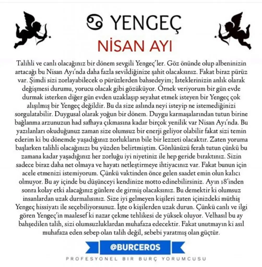Yükselen Yengeç ve Yengeç Burçları Nisan Ayı Burç Yorumu :