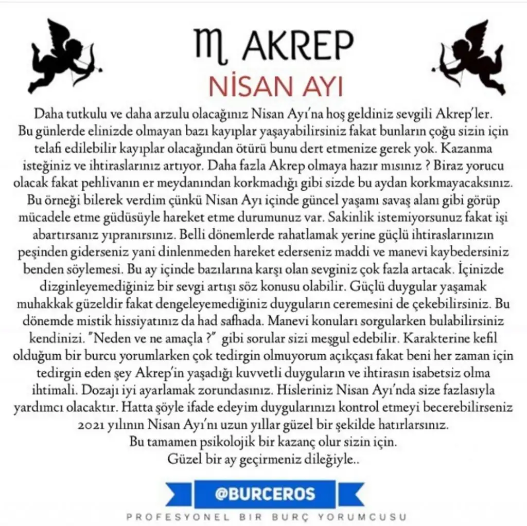 ♏️ Akrep ve Yükselen Akrep Burcu: Merkür'ün koç burcuna geçmesiyle 19 nisana kadar iş arkadaşlarınızla iletişiminiz yoğun olacak olabilir. Sağlıkla ilgili konuşmaların içerisinde kendinizi bulabilirsiniz. Zihniniz sürekli iş ortamınızda ve sağlığınızla meşgul olacak olabilir. Daha sonra venüs boğa burcuna geçiyor ve siz bu ay var olan bir ilişkinizi evliliğe dönüştürmek isteyebilirsiniz. İkili ilişkilerinizde güzel değer göreceğiniz bir dönem sizin için. Ortaklı işler için girişim yapmak isteyebilir, olumlu sonuçlar alacak olabilirsiniz. 19 nisandan sonra merkürün boğa burcuna geçmesiyle ikili ilişkilerde dengeyi bulmaya yönelik konuşmalar yapabilir, iş ortaklıklarınız da orta yolu konuşarak bulacak olabilirsiniz bu dönemde ki fikir çatışmalarına girmemeye özen göstermelisiniz. 23 nisandan sonra mars yengeç burcuna geçecek ve sizin eğitim, yolculuklarla ilgili konularda fazlaca mücadele etmeniz gerekecek olabilir. Seyahatlerde, yolculuklarda hırsızlıklara, kazalara, kavgalara karşı temkinli olmanız gerekebilir.