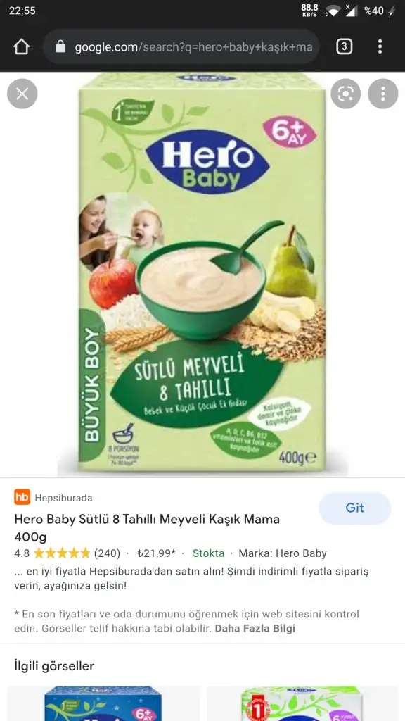 ben ülkerin cici bebe bisküvisini veriyorum evet kaşık mamasını sevdi cnm bu aşağıdaki lerden alıyorumbiz hero babynin mamalarını denemedik henüz ama organik bebek bisküvilerine bayıldık. Onu kullanıyoruz devamlı. Kızımd aseviyor, atıştırmalık olarak veriyorum bazen ona da. Bebeğiniz mamasını sevdi mi hangi çeşidinden aldınız,deneyeyim ben de
