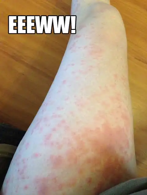 karnım bacaklarım kollarım bir miktar sırtım böyleydi, bazı yerler daha fazla kızarık falan...