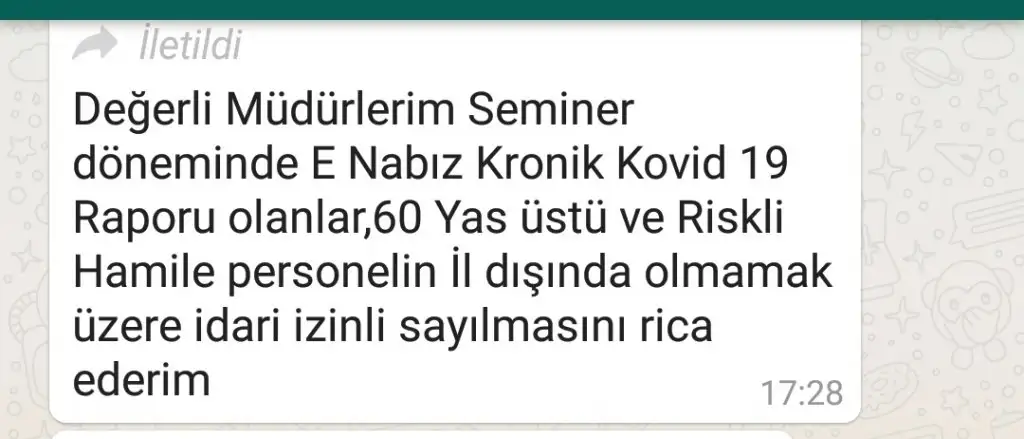 Merhaba, okula gitmedim elimde yazı yok. WhatsApp'tan bilgilendirildik.Yazıyı atar mısın cnm bana da benim de riskli hamile
