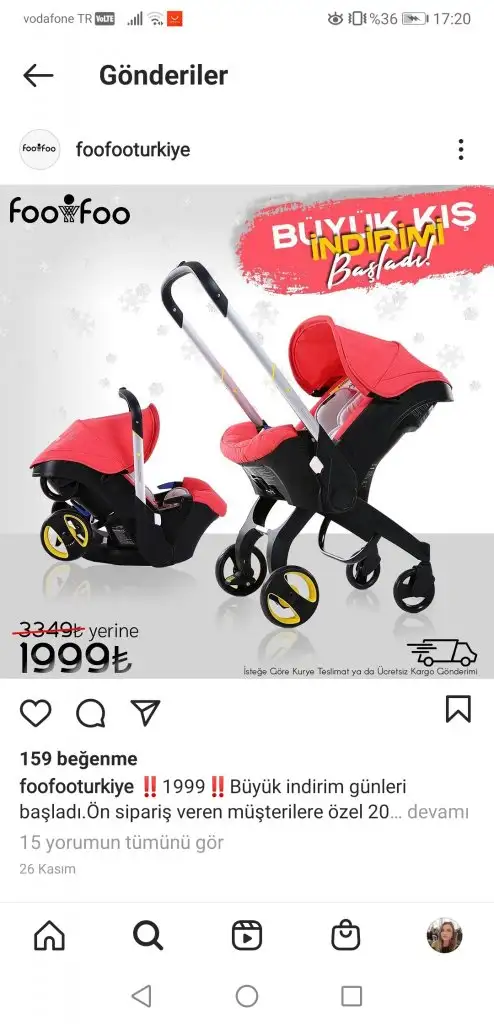 Bunu bilmiyorum ağırlığına dikkat ettin mi indirip kaldırsaydın Bi. Pusetle beraber katlanıyor mu ona da bak, bundan önce Bi araba aldım ben katlanırken hepsi tek tek çıkıyordu götürüp iade ettim çok zahmetli gelmişti. Black friday den 5 bin TL ye almıştım 7 bin şuan. Uygun bişi istersen şöyle Bi araba buldum bunu alcaktım aslında büyüyünce kullanamaz diye vazgectim. Doona nın aynısı yarı fiyatından az