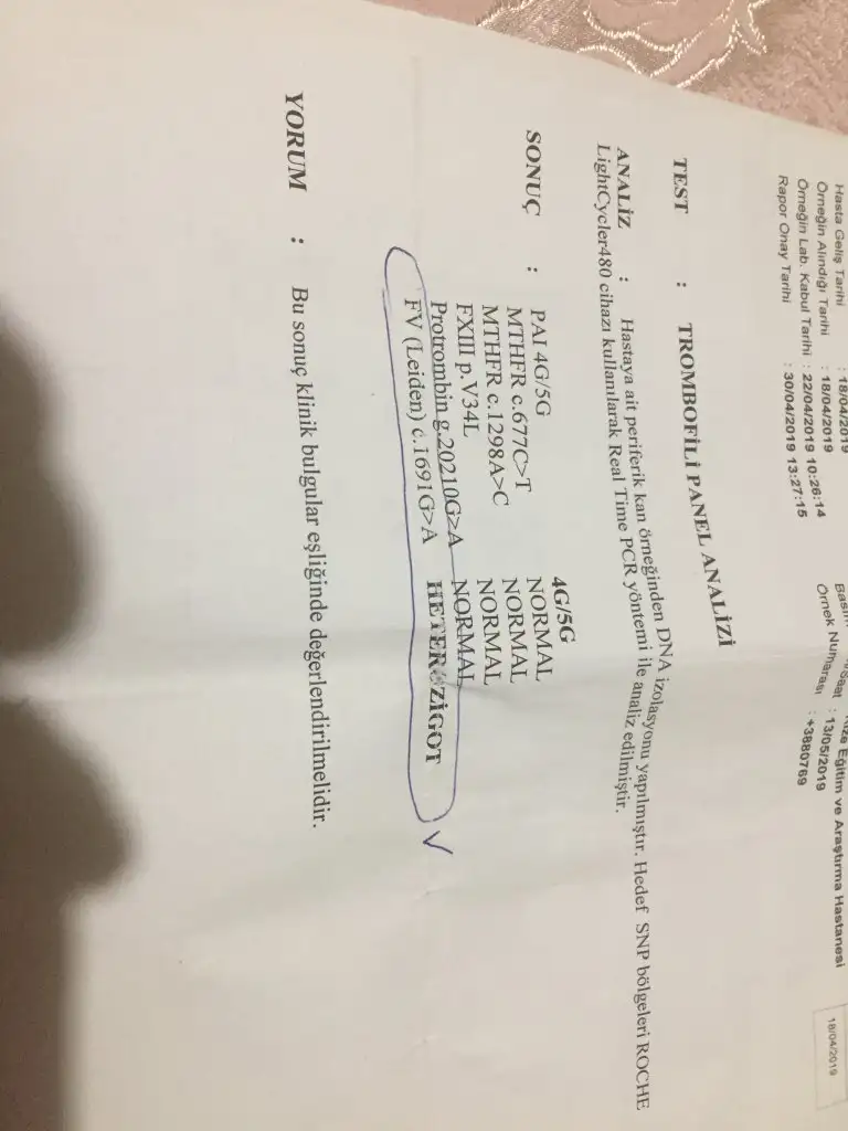 Bende genetik bozukluk çıktı, 10. Ve 15. Genlerde yer değiştirme varmış yani resiprokal translokasyonmuş adı. Kan pıhtılaması da çıktı, heterozigotmuş. Yalnız ben coraspin kullanmıyorum hiç demediler, doktora bi gitsem mi acaba
