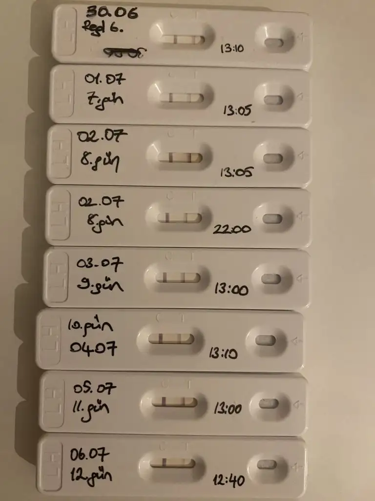 4 5 gün önce kaset test yaptım negatifti. Beklenen adetim 11 temmuz ama pko olduğum için 30 günde bir olduğumda oluyor 50 günde bir olduğumda o yüzden reglimi baz alamıyorum