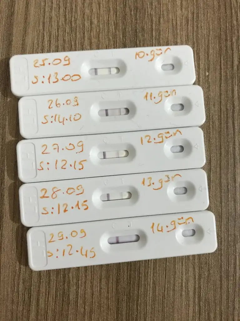 Son 2 aydır 12. Gün yumurtlama görüp 26-27. Günlerde adet olan ben, bu ay 24. Gün olmasına rağmen yumurtlama göremedim. Hatta gittikçe silikleşen testlerle karşılaşıyorum. Bugün de primolut’a başladım. Bu ay benden Ümit yok 😕 adeti de ne zaman olacağım belli değil 🤦🏻‍♀️
