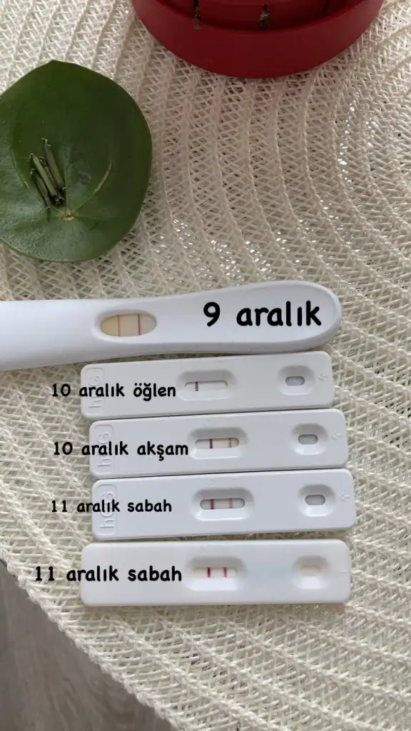 Kanama hemen olması gerekmiyor canım. Benim kanın düzensiz olduğunu öğrendikten bir kaç gün sonra oldu. Bu arada sanırım tarihler 8-9-10 Aralık şeklinde olacak. Yarın sabah tekrar bi test yaptır. Yine düşükse ya da çok az artmışsa kimyasal maalesefKızlar bende Aralık gebelik bekleyenlerdenim yumurtlamadan sonra 11. Gün kan 63 ertesi gün aynı yerde yaptırdığım kan 45 kimyasal olabilirmiş ama doktor haftasonu baktır bu ara değer kafa karıştırabilir dedi. Testlerimi atıyorum 65i öğrendiğim gün ilk sıradaki erken gebeliği yapmıştım. 10 aralık olanları ise 45 çıkan gün öğlen ve akşam yaptım ama öğlenki sonuçtan sonra koyulaşmış gibiydi akşamki. En alttakileride 11 aralıklarıda bu sabah ilk idrarla yaptım baya kırmızı. Zaten ortadaki üç test aynı marka en sondaki farklı. Kimyasal olsa gittikçe her testte silikleşir miydi? Yani acaba yanlış mı ölçüldü bi kanamam da yok lütfen yardımcı olur musunuzEki Görüntüle 2967620