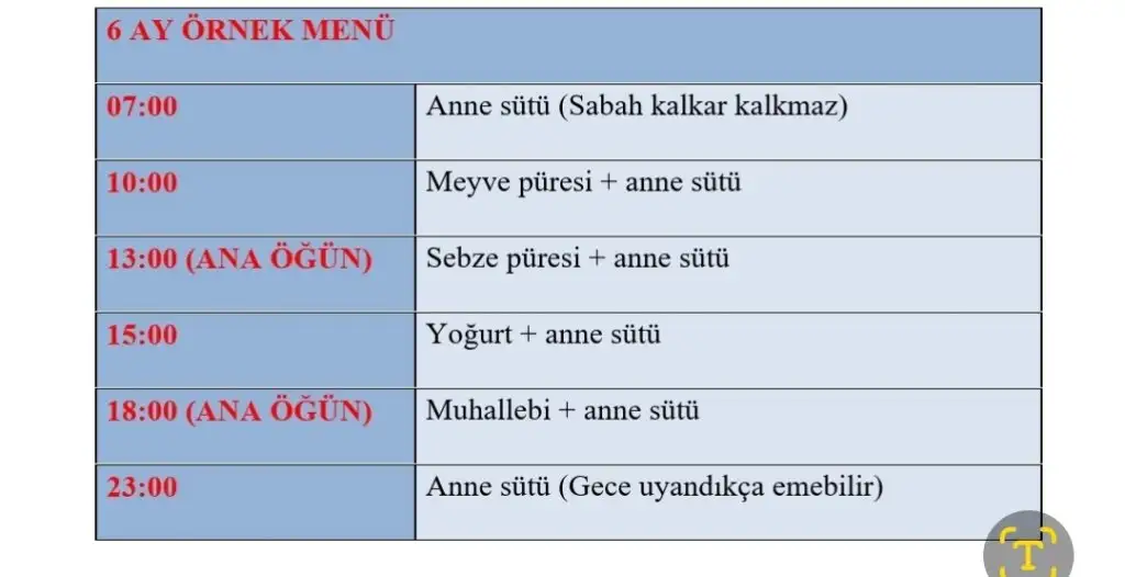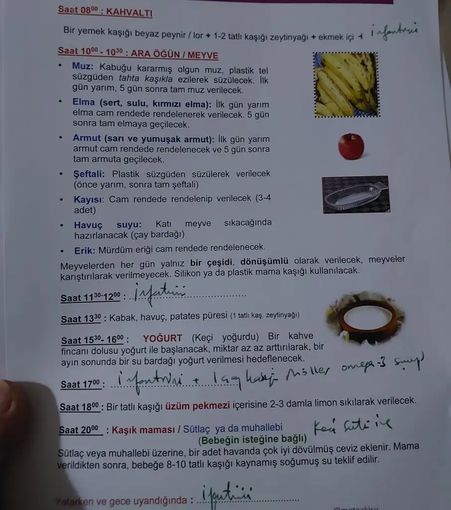 Anlatirken video çektim yazmadi kenarlarına tek tek ama mesela kahvaltıyla meyve arası mama var ogleyle meyve arası mama var yani aralarda mama var birde yatarken ve gece beslenmesi mama. Ama benimki zaten 2 kasık anca yediğinden ben yemek yedirip 5-10 dk sonra mama veriyorum ek gidayi yemiyoki doysunMamayi ne zaman veriyoz ya da anne sutunu liste hep yemek dolu